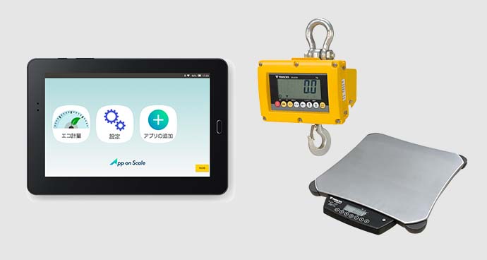 - 専用タブレット端末に、台秤やクレーンスケールなどワイヤレスタイプの計量器を無線接続。