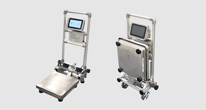 一体型のクラウド対応計量器です。 - 車輪付きで移動しやすく、不要な時は折り畳んで収納することができるため、