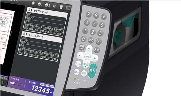 テンキー(数字キー)・実行・発行・紙送りなど使用頻度の高いキーを操作パネル内に配置。
