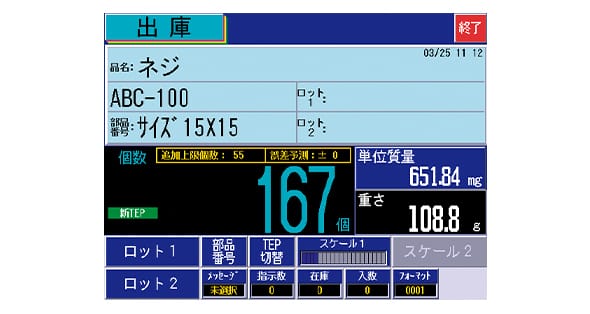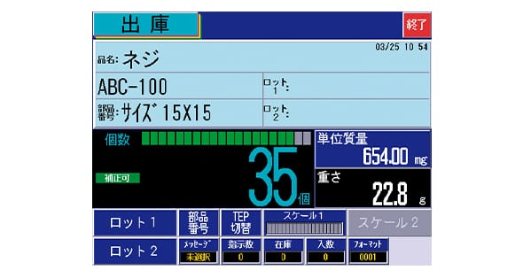 カウンティングスケールに音声機能を搭載したことで操作性が格段に向上。大型カラータッチパネルで見やすく、作業がよりスムーズになりました。