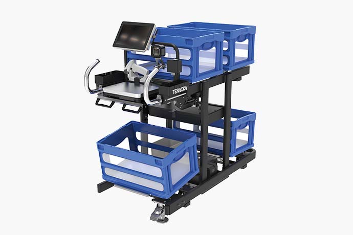 作業者の歩行数を減らし、省人化・効率化を図りながら人との“協働”を実現する、AMR型の最新鋭ピッキングカート-