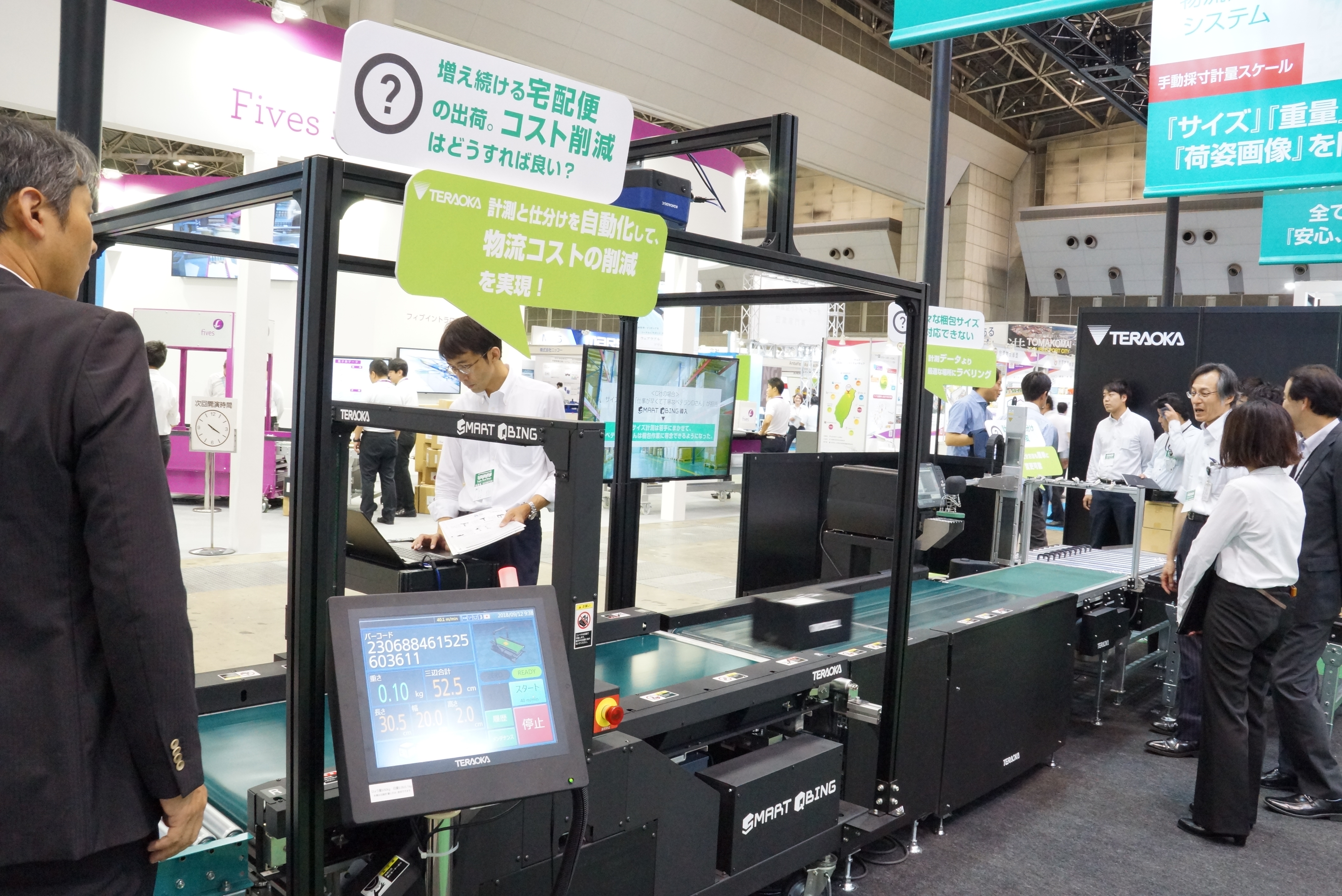 1つ目の注目製品は昨年リリースした自動採寸計量スケール「Smart Qbing」(以下SQ)。今回の展示会での見どころは「SQ」を“実際に使うライン”に組み込むこと。つまりライン全体を一つのソリューションとして提案しているところです。