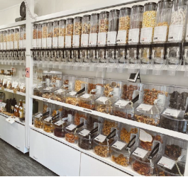 バルクフーズは、オーガニックのドライフルーツやナッツ、搾りたてのナッツバターやチョコレート、ナチュラルな洗剤など200種類以上の食品、生活用品を、g単位で量って購入できる、川崎市で展開している量り売り専門店です。量り売りによるフードロス削減や、マイ容器の持ち込みを推奨し、廃プラスチック削減を推進しています。地元の人はもちろん、遠方からも食材にこだわりを持つ人や、地球環境保全に感度の高い人々に支持されているお店です。