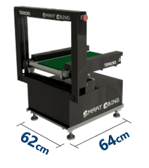 自動採寸計量器「マイクロSMART QBING」は、ポスト投函サイズをはじめとする小型荷物に特化し、業界初の計量10g/計測2.5mm単位の高精度採寸計量を実現。コンベヤー上に荷物を流すだけで、バーコードスキャン/サイズ計測/計量を瞬時に行います。