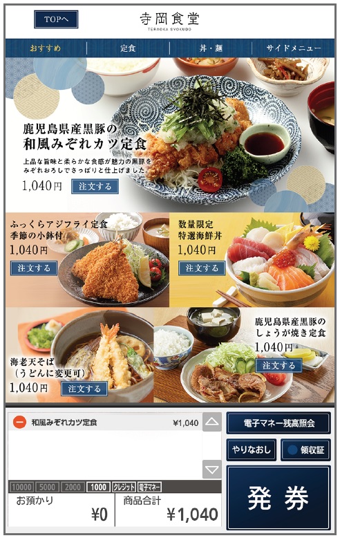 従来機に比べ、メニューの改廃が簡単。売り込みメニューやトッピングなどのおすすめができ、客単価アップも期待できる。クラウドや他の同社製品と連携することで豊富なシステムバリエーションの提案が可能だ。「一券楽着(いっけんらくちゃく)システムと連動することでレジからも厨房へ注文を即時に通せ、調理時間の短縮や店舗の回転率アップにもつながる。非接触・非対面などコロナ感染防止対策の一環でも活用が可能で、フードコートやレジャー施設、社食・学食など幅広い業態で利用できる。