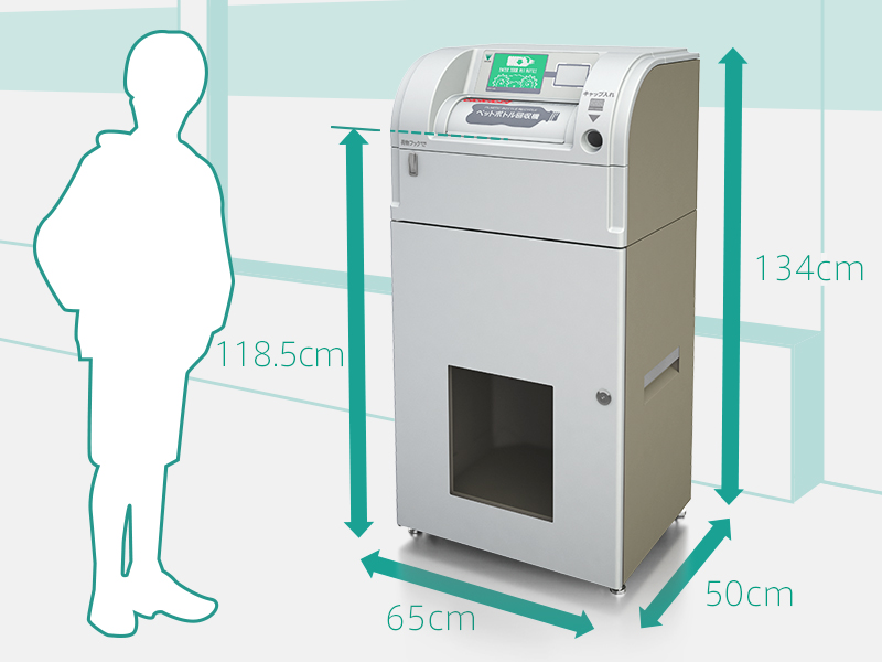 今回採用された製品は幅広い層のお客様に投入を促す目的から、子どもや背の低い高齢者でもペットボトルを投入できるよう、投入口を約120cmの高さに設定されています。コンパクトな箱型タイプでありながら収納力は1機あたり小型ペットボトル約280本の回収を実現。店舗従業員による袋交換頻度も抑えられ、回収作業負担を軽減させます。