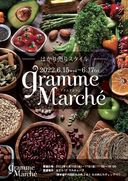 6月15日(水)~17日(金)の3日間、丸ビル1階マルキューブにて開催される量り売りのイベント『丸の内gramme Marché (グラムマルシェ)2022』(主催:丸の内グラムマルシェ実行委員会)に、当社の量り売り製品を提供し、イベントの開催をサポートします。本イベントは、2013年からスタートし今回で10回目を迎えます。