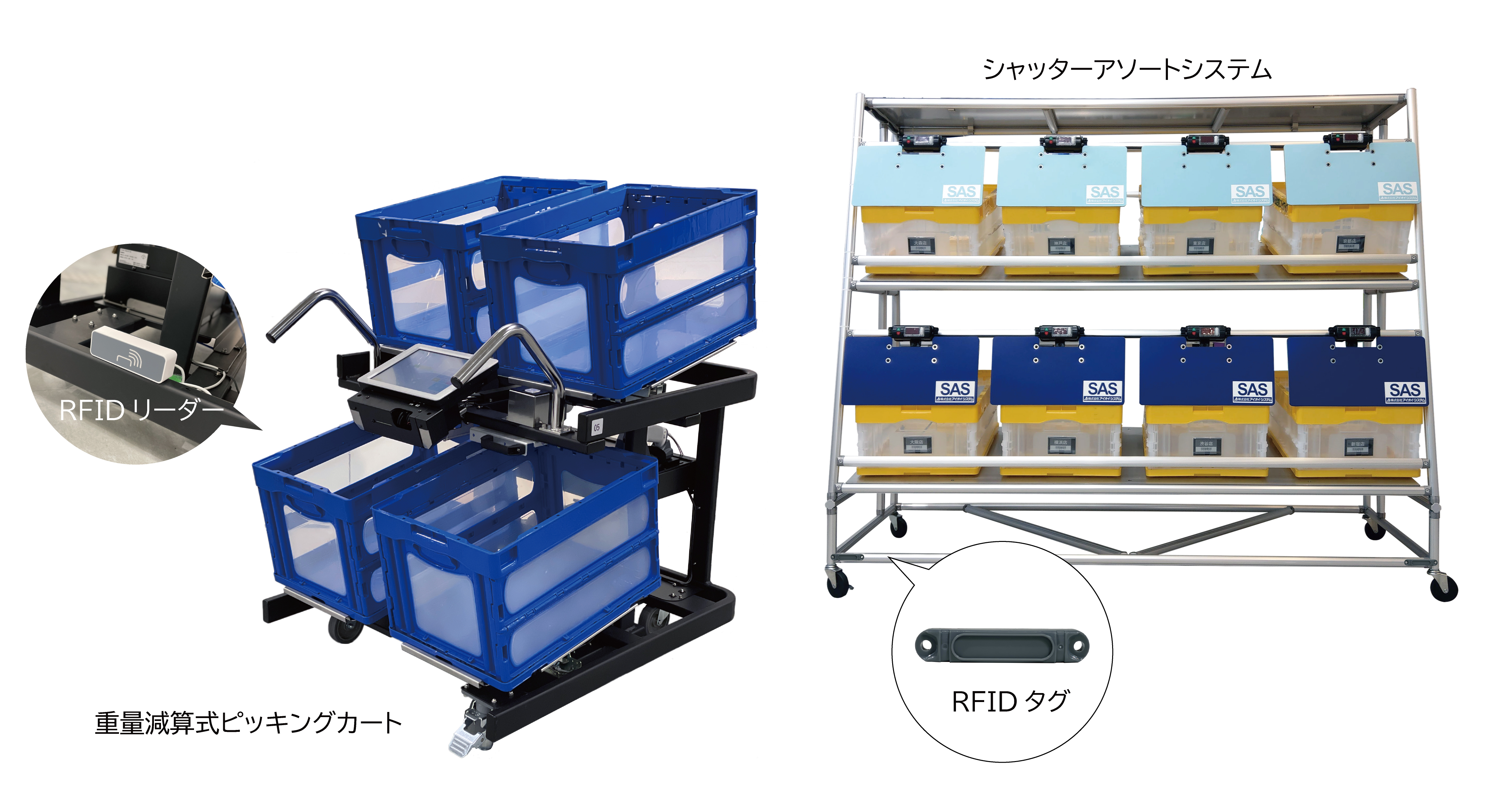 新製品「重量減算式ピッキングカート」と「シャッターアソートシステム」をRFIDで連携する、「重量検品アソートシステム」を発売に先駆けて公開します。