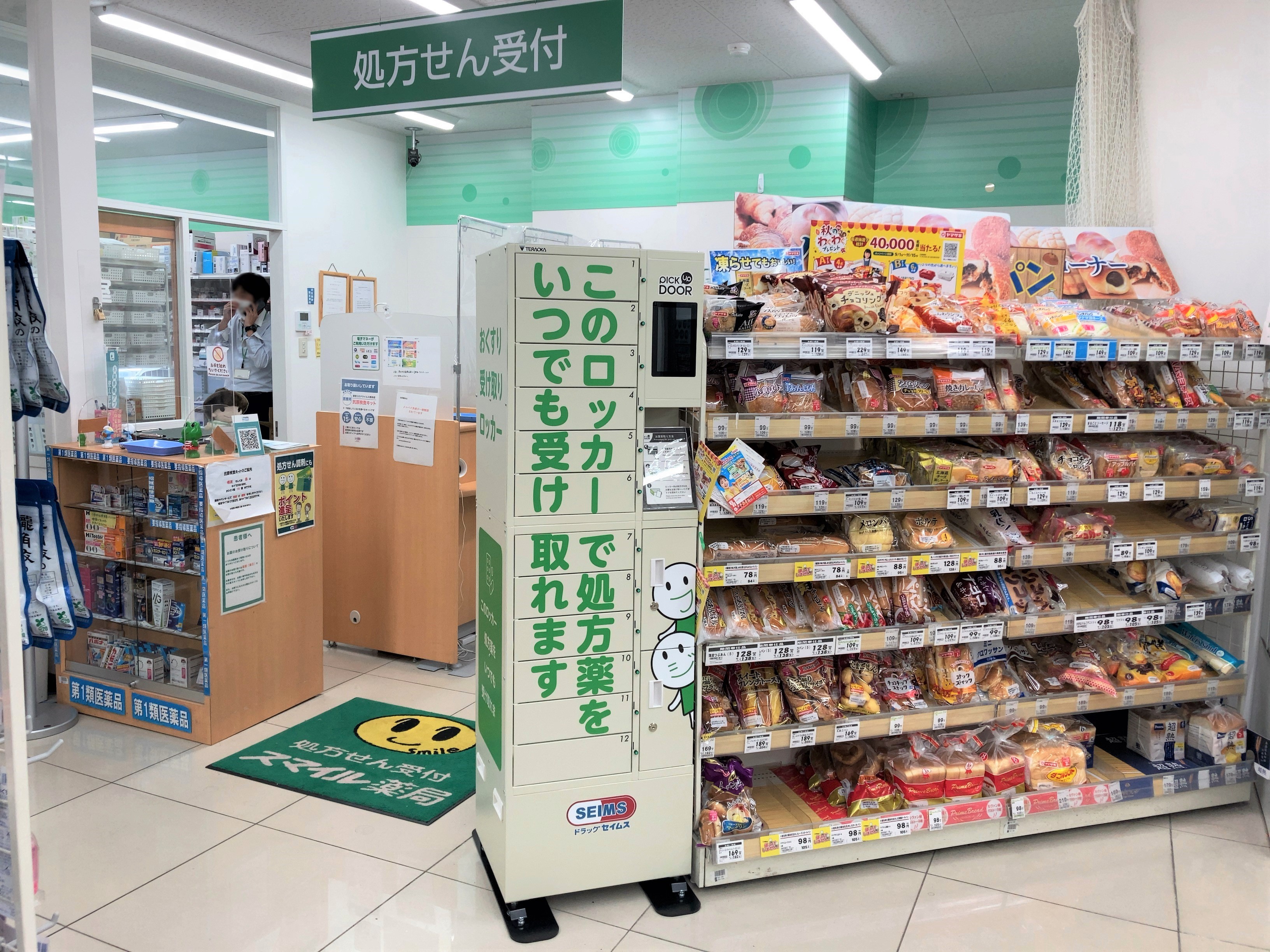 当社の調剤お薬受け取り専用ロッカー「調剤薬局向けピックアップドア」が、株式会社富士薬品(本社:埼玉県さいたま市/代表取締役社長 高柳昌幸)が運営するドラッグストア・調剤薬局の「ドラッグセイムス」「ドラッグストア スマイル」計3店舗へ初めて設置され、10月11日(火)より運用が開始されました。
