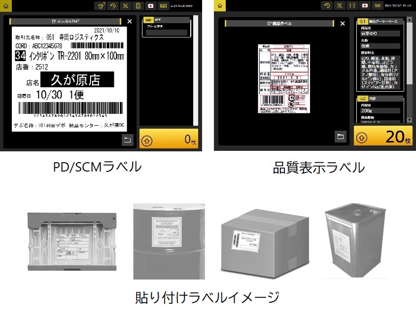 特に、ラベルの貼り付け作業では、コンテナ・段ボールなどは積み重ねて保管・輸送されることから、PD/SCMラベルや品質表示ラベルを手作業で荷物側面へ貼り付けする必要がありました。
