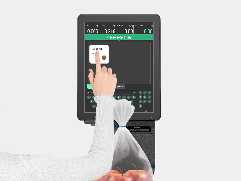 青果エリアにおける完全セルフサービスのスケール「SM-6000AI」は、内蔵カメラと機械学習技術を利用して、計量皿に置かれた果物や野菜を自動認識します。正確なPLUと重量に応じた価格情報がディスプレイに自動的に表示されます。このユーザーフレンドリーなソリューションで、セルフサービスエリアでのエラーを防止します。