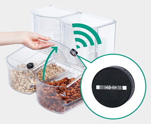 買い物客が自ら計量・値付を行うセルフ量り売りにおけるスムーズな操作をサポートします。モーションセンサーから送信された商品情報を受信し、商品選択ボタンを自動で表示するため、買い物客は画面に現れた自分の商品ボタンを押すだけで商品選択が完了します。また計量時には、計量用容器のRFIDラベルに登録された容器自体の重さ(風袋)を自動で差し引き、正味重量での金額を算出します。