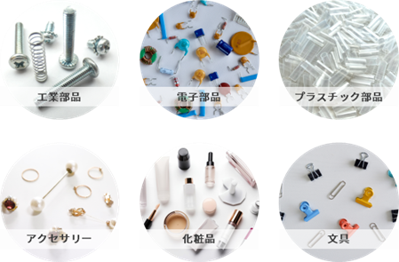 重量検品で数量間違いを防止することで、後工程での検品作業を削減します。ネジ・ボルト・ナットなどの工業部品や電子・プラスチック部品、アクセサリー・化粧品・文具など、より小さく細かいアイテムの計数・ピッキング作業に最適です。
