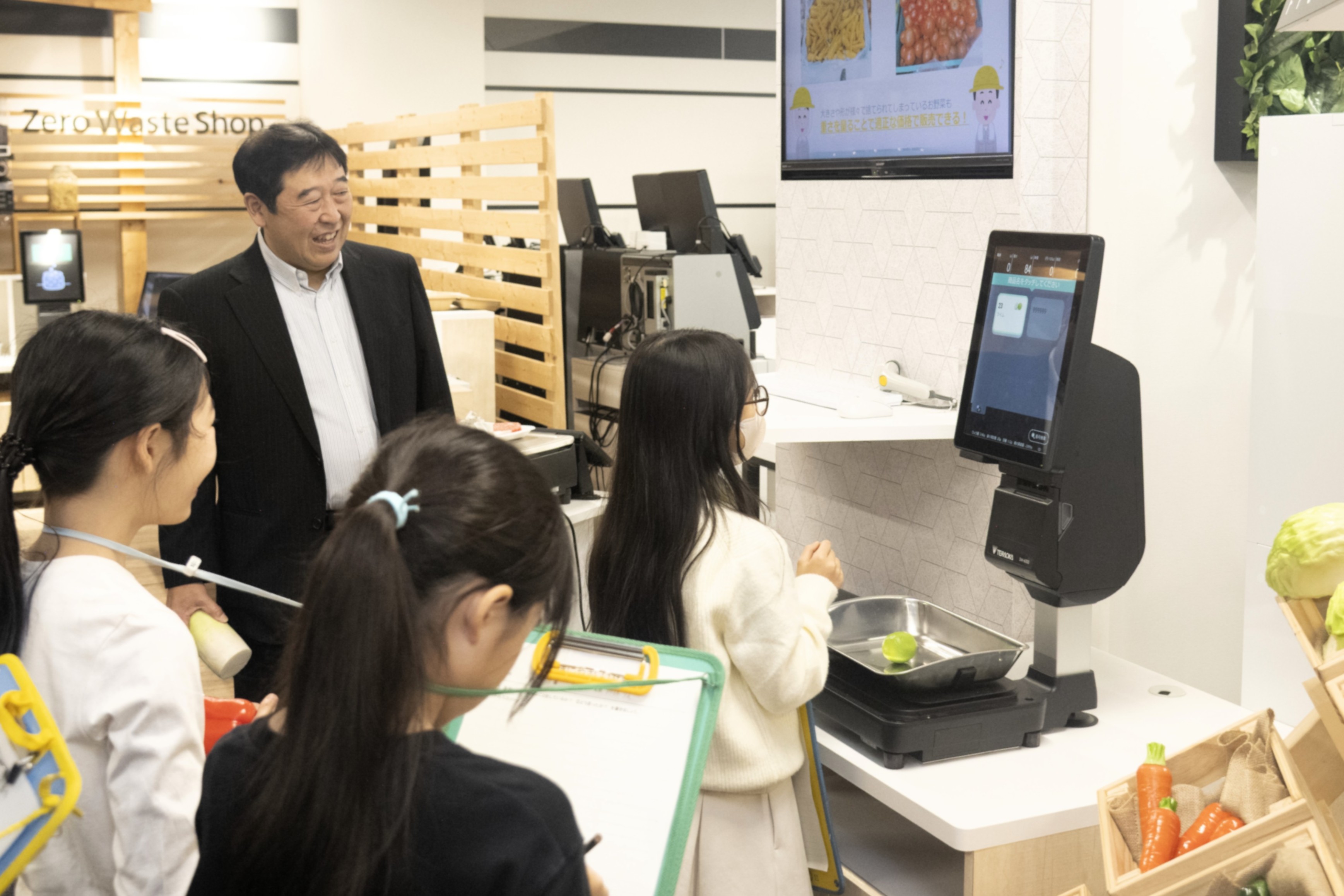 野菜のセルフ計量とバーコードラベル発行も体験しました。