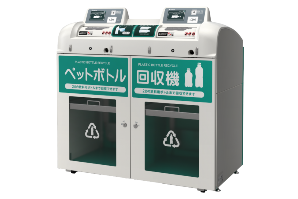 ペットボトル減容回収機「ボトルスカッシュ」は、飲料用ペットボトルを約1/3に圧縮減容する自動回収機です。きれいなボトルのみを回収し、資源循環に貢献する「リサイクルの入り口」として普及が進み、2025年7月には47都道府県への設置を達成、現在では全国に約5,500台(2025年11月時点)が設置されています。