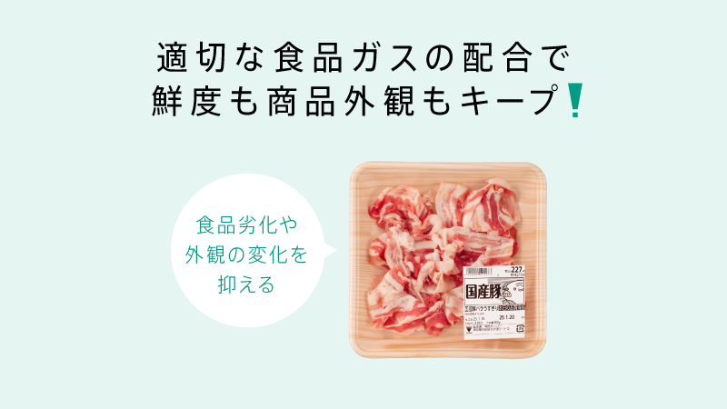 MAP包装は適切な食品ガスの配合により、品質劣化や食品の外観の変化を抑えます。
